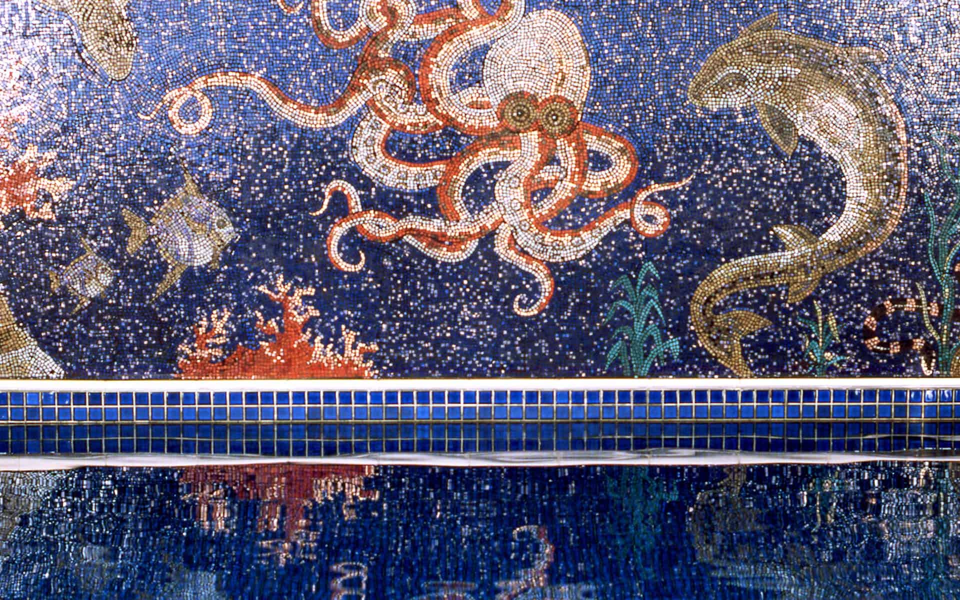We are specialists in the creation of complex mosaics. Using both direct and indirect application techniques, we can achieve high levels of precision and accuracy in creating complex patterns and aesthetic results. We often hand cut tesserae to size and shape to reach the best results, with flowing compositions quite different from those achieved using off-the-shelf square cut tiles.