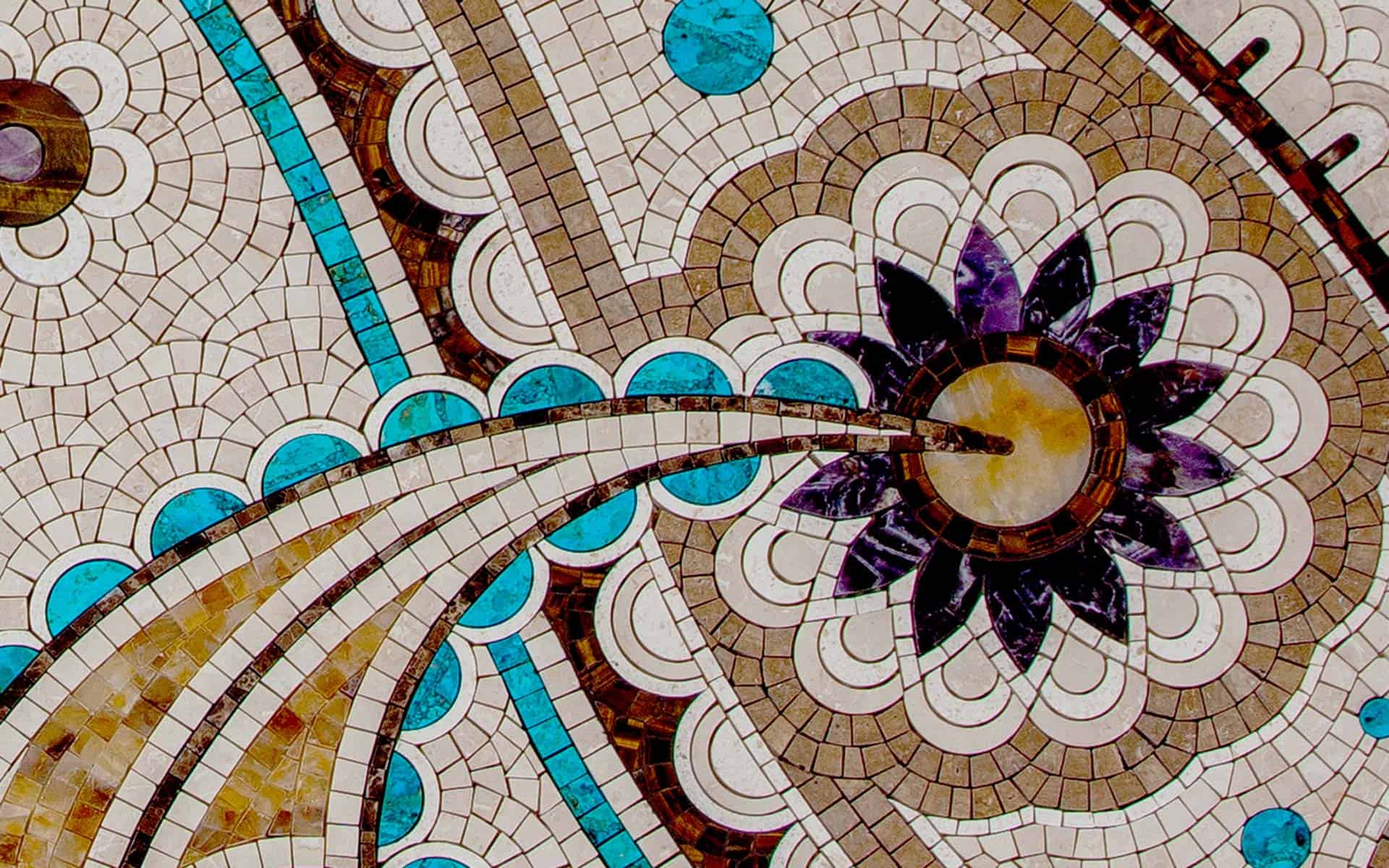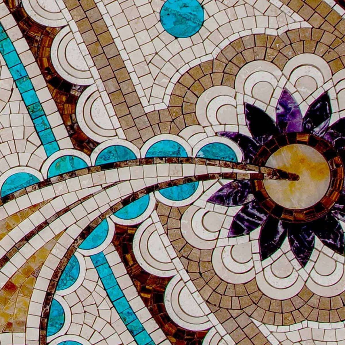 Mosaic artworks embody a rimless blend of creativity and craftsmanship enriched by the texture and enduring natural beauty of stone, metal, and semi-precious elements.